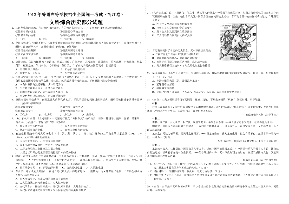 2012年浙江省高考历史(原卷版)是广大考生都在关注的,本站就为大家带来2012年浙江省高考历史(原卷版)试卷及答案解析详情,仅供考生参考。