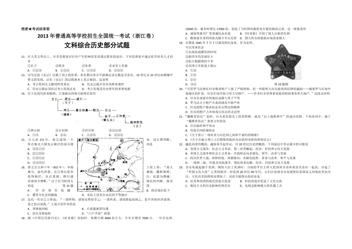 2013年浙江省高考历史(含解析版)已公布,关注本站,本站会在2013年浙江省高考历史(含解析版)试题及答案公布后为大家及时更新。