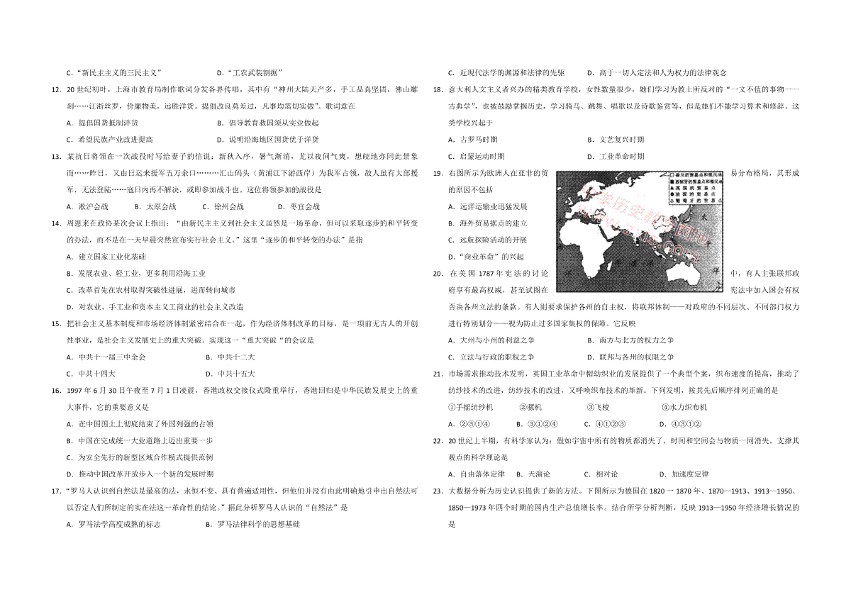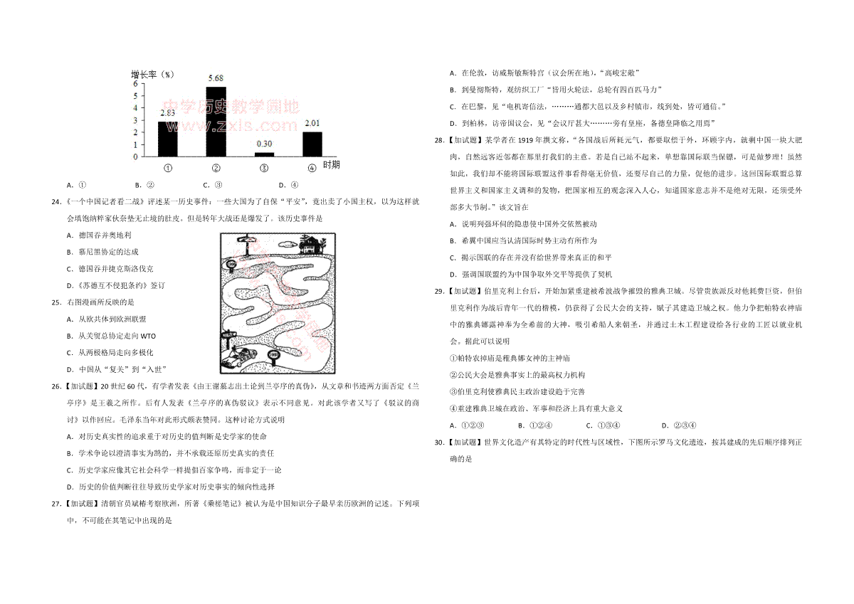 一、2017年浙江省高考历史【4月】(原卷版)