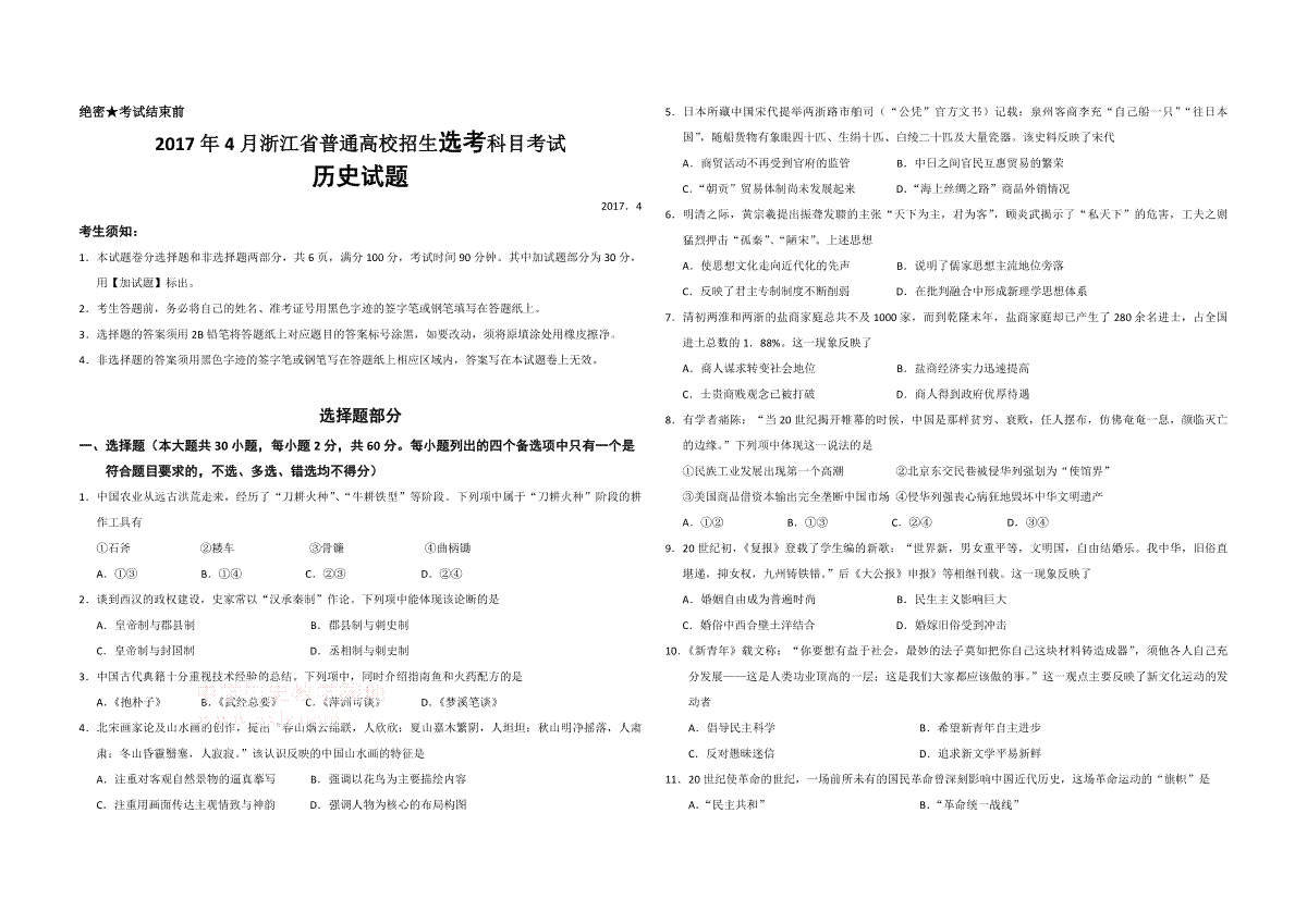 2017年浙江省高考历史【4月】(含解析版)是广大考生都在关注的,本站就为大家带来2017年浙江省高考历史【4月】(含解析版)试卷及答案解析详情,仅供考生参考。