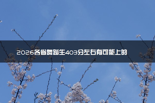 2026年各省艺考舞蹈生403分左右能报考多种类型的大学,具体取决于专业成绩、所在省份及当年各高校招生政策。参考去年的艺考舞蹈生录取数据,最低分401分左右就可以上大学,多数省份舞蹈生成绩在403分左右有机会被录取的院校有:甘肃兰州现代职业学院015艺考类专业录取分为403分、甘肃甘肃工业职业技术学院015艺考类专业录取分为402分、安徽湖南体育职业学院001专业组录取分为401分、甘肃海南科技职业大学007艺考类专业录取分为402分、黑龙江北京戏曲艺术职业学院第005组录取分为403分、山东朔州师范高等专科学校舞蹈教育(师范类)专业录取分为402分等。当然在报考时,舞蹈生要密切关注各高校的招生章程和录取规则,结合自身专业和文化成绩综合考量,合理填报志愿。