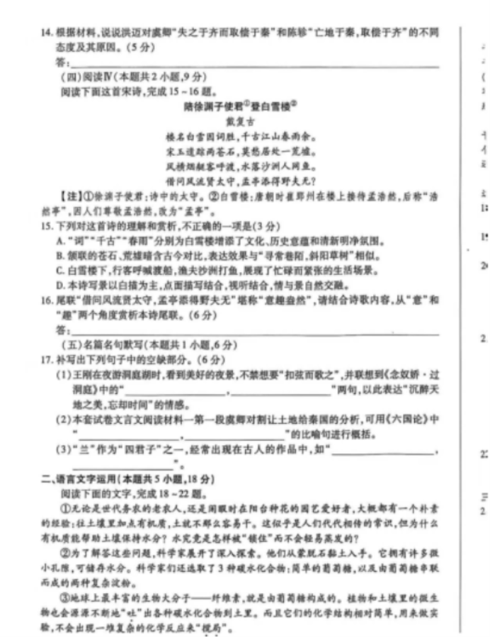 河南高考语文试题
